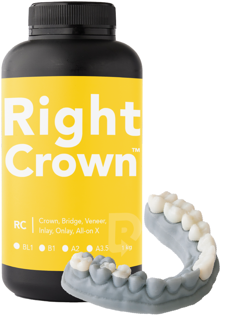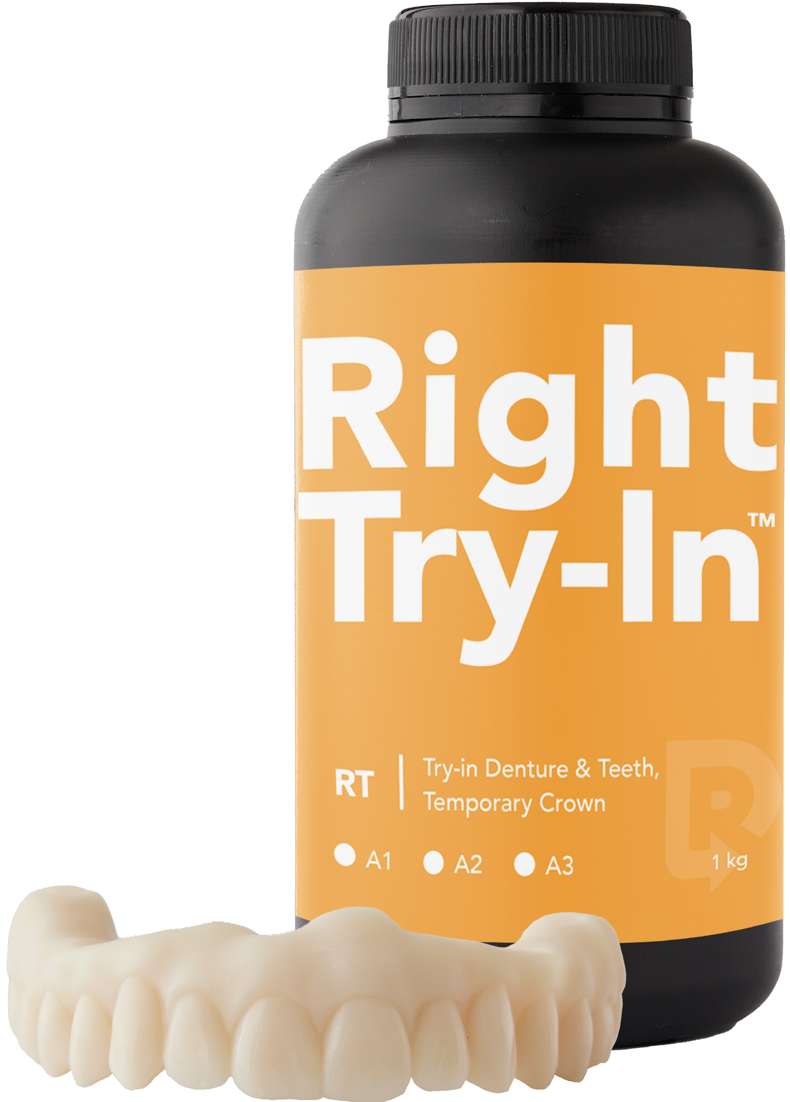 Right Try-In™ is a high-quality 3D-printed light-curable resin for crown temporary try-in, ensuring precision, high strength, and accuracy. It enhances occlusal adjustments, streamlining crowns and denture fabrication for efficient, accurate treatments. Experience next-gen digital dental restoration with RightDent Right Try-In™!